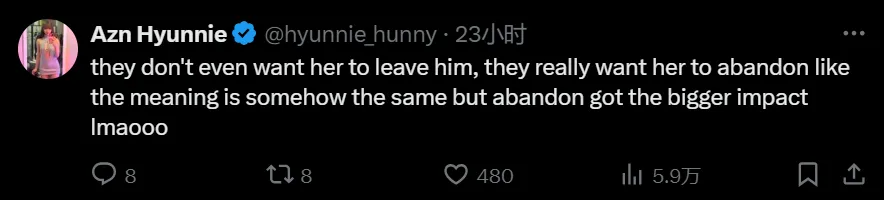 还有一些网友开始咬文嚼字,说中国网友这个“abandon”用得妙啊。
