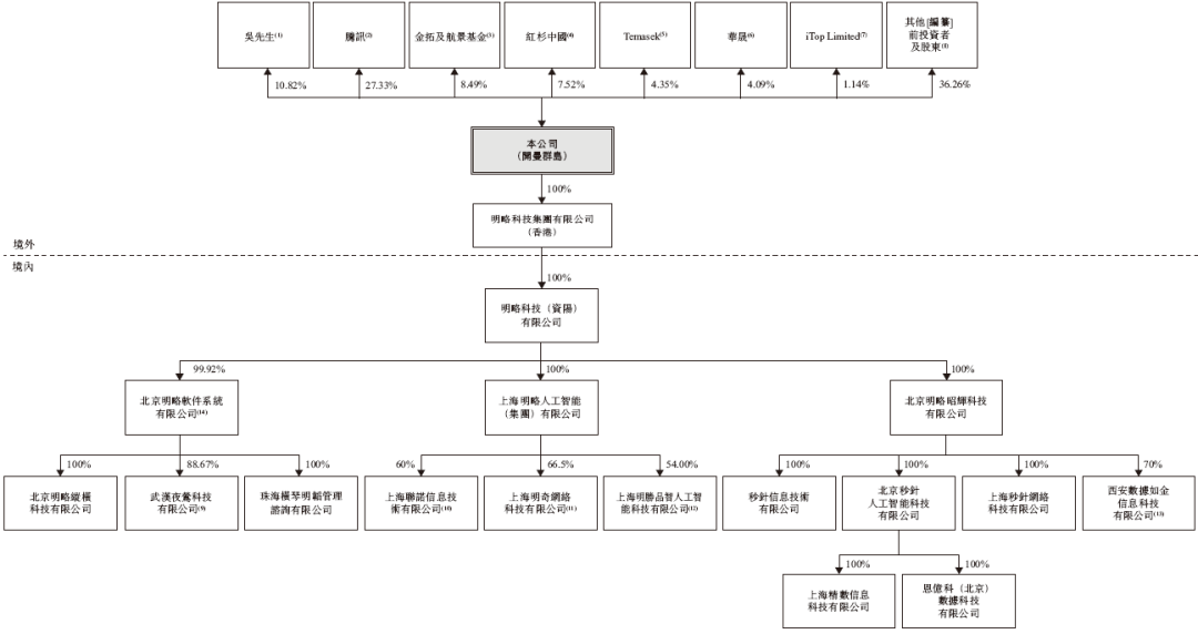 吴明辉先生,通过Mine Mine International持有全部B类股份,占总股份约11.32%,推算约占56.08%的投票权。此外,吴先生还控制珠海横琴明略万象、iTop Limited所持约1989393股A类股份(占总股份约1.52%)的投票权,推算合共拥有56.83%的投票权。