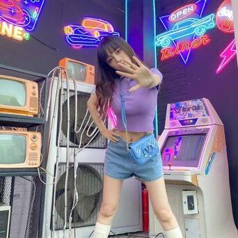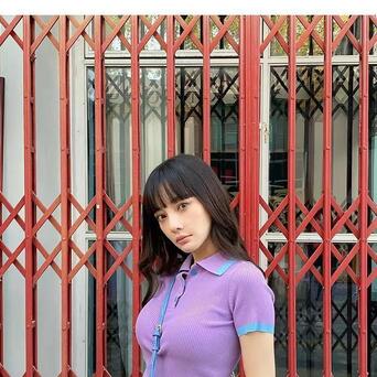 穿紫色针织衫配短裤灵动俏皮股票配资公司怎么找,漫画腿真吸睛!